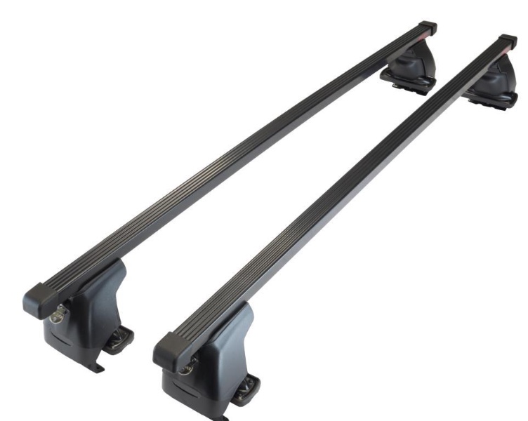 Barre de toit Mont Blanc, en ACIER, avec jeu de fixations universelles et systeme antivol.