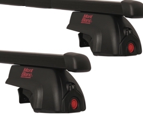 Barre de toit Mont Blanc, en ACIER, avec jeu de fixations pour barres longitudinales et systeme antivol.
