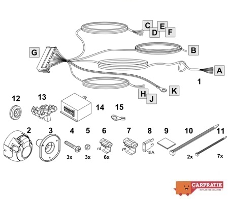 The towbar electric wiring kit the practical solution to power your trailer lights, bike carrier or any other towing accessory. While remaining economical, the ready-to-install 7-pin wiring kit with electronic box allows for easy installation on all multiplexed vehicles.